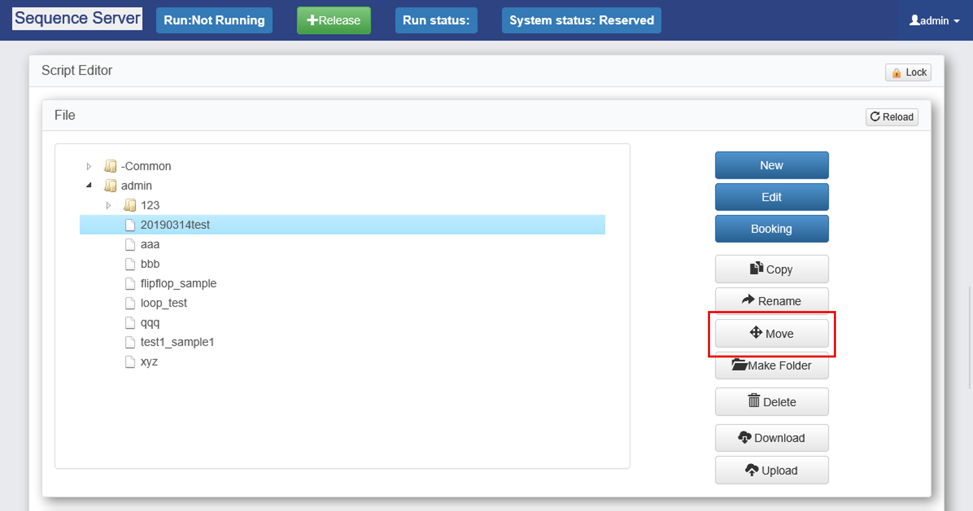予約しているスクリプトの実行を開始する。 シーケンス(後処理シーケンスも含む)が実行中でない場合に使用可能になる。 スクリプトの実行予約は、シーケンス管理サーバーのWebUIで行う必要がある点に注意が必要である。
