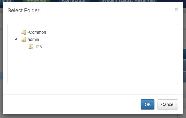 新規作成ダイアログの Select ボタンを押下するとスクリプトファイルを保存するフォルダを選択するダイアログが開かれる(Fig. 177 )。 フォルダ選択ダイアログにおいてフォルダを選択し、 OK ボタンを押下する。 なお、スクリプトファイルツリーにおいて新規ファイルを保存するフォルダおよび同じフォルダにあるファイルを 選択した状態でスクリプトファイル新規作成ダイアログを開くと、 Target Folder にそのフォルダへのパスが入力される。